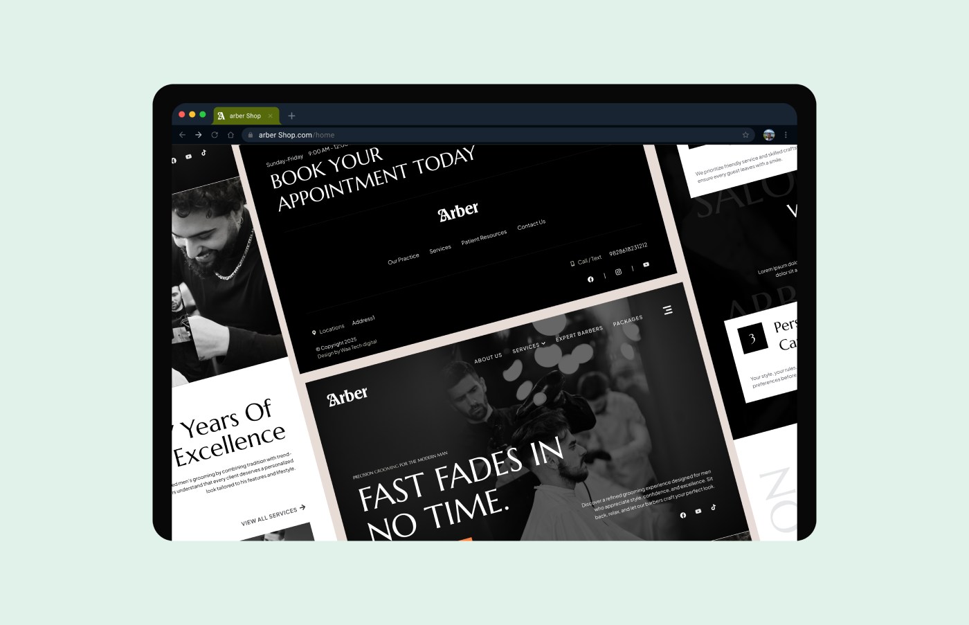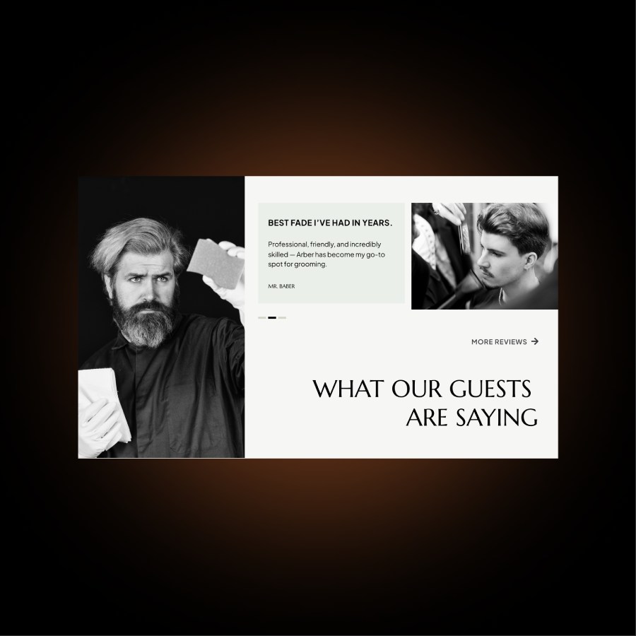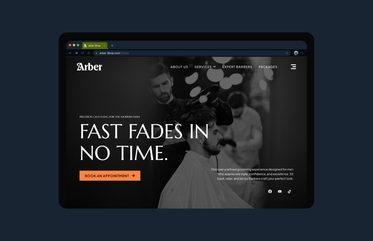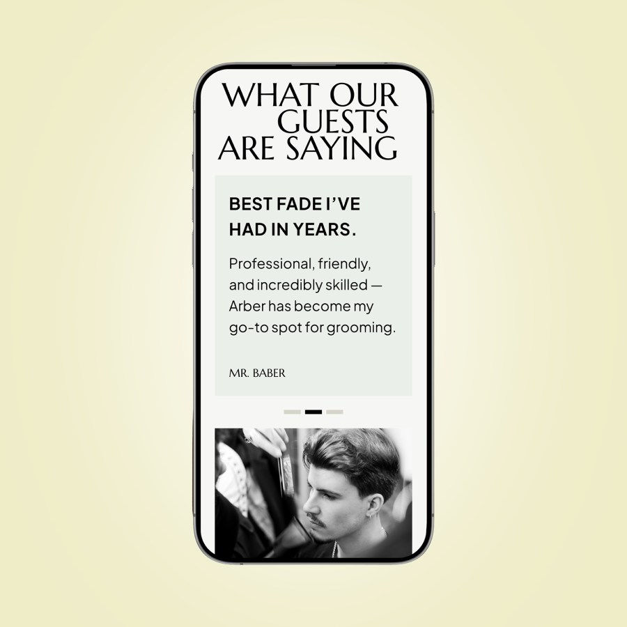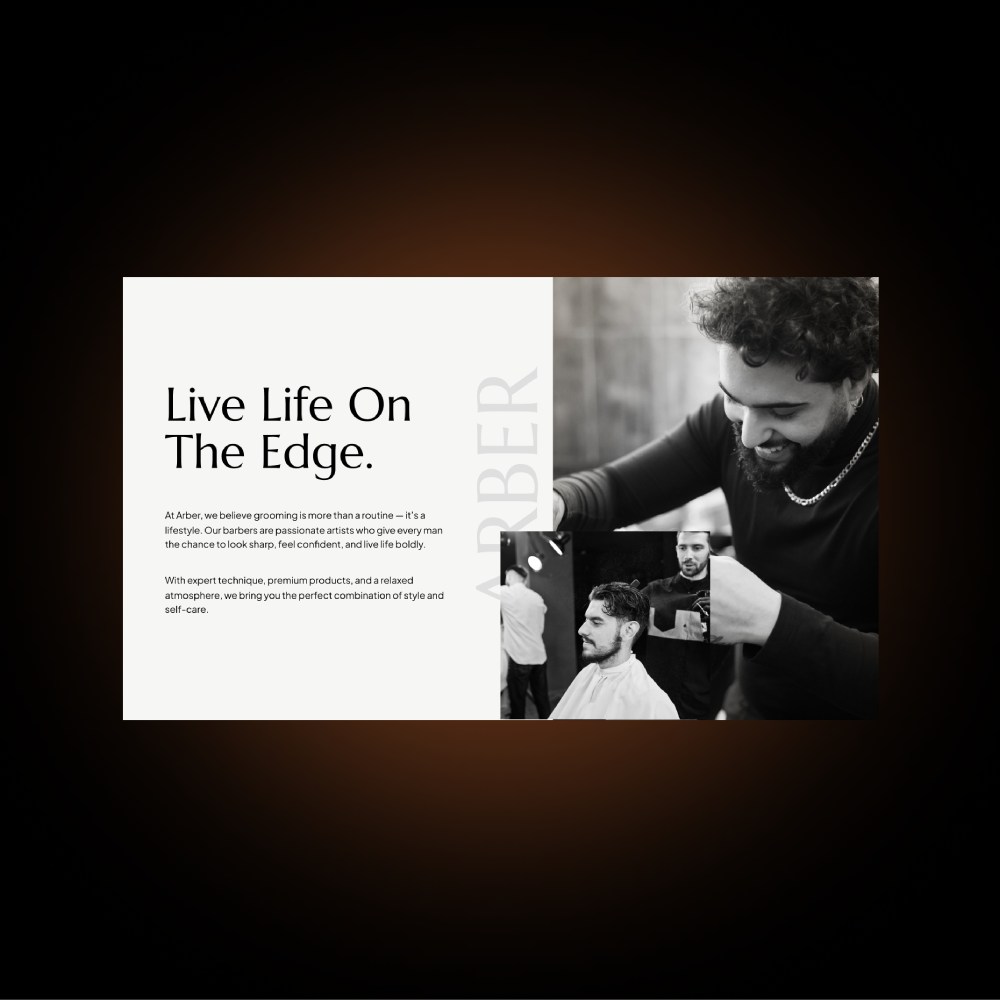Arber Shop is a modern men’s salon offering premium grooming services in a refined and welcoming environment. The goal of this project was to design a website that captures the salon’s bold personality while making it easy for clients to explore services, book appointments, and connect with the brand. Arber Shop is a modern men’s salon offering premium grooming services in a refined and welcoming environment. The goal of this project was to design a website that captures the salon’s bold personality while making it easy for clients to explore services, book appointments, and connect with the brand.