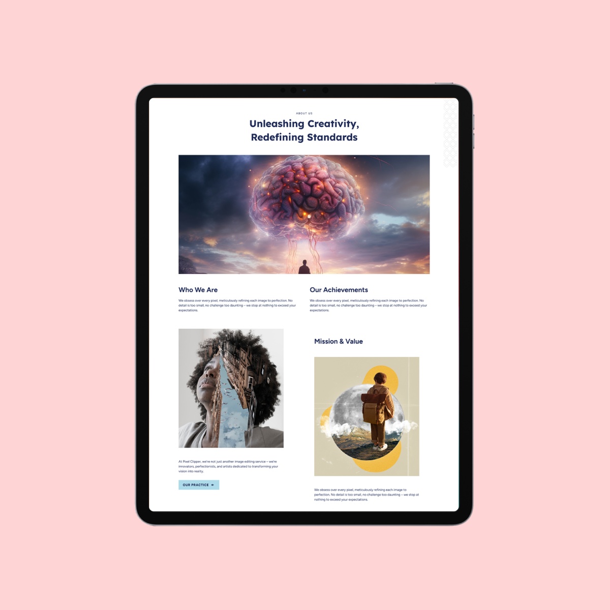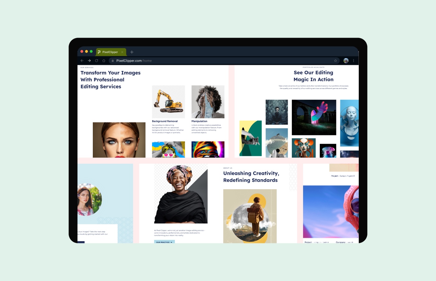 A modern, conversion-focused website redesign for an image editing and clipping service platform, built to communicate quality, speed, and reliability while driving client inquiries.