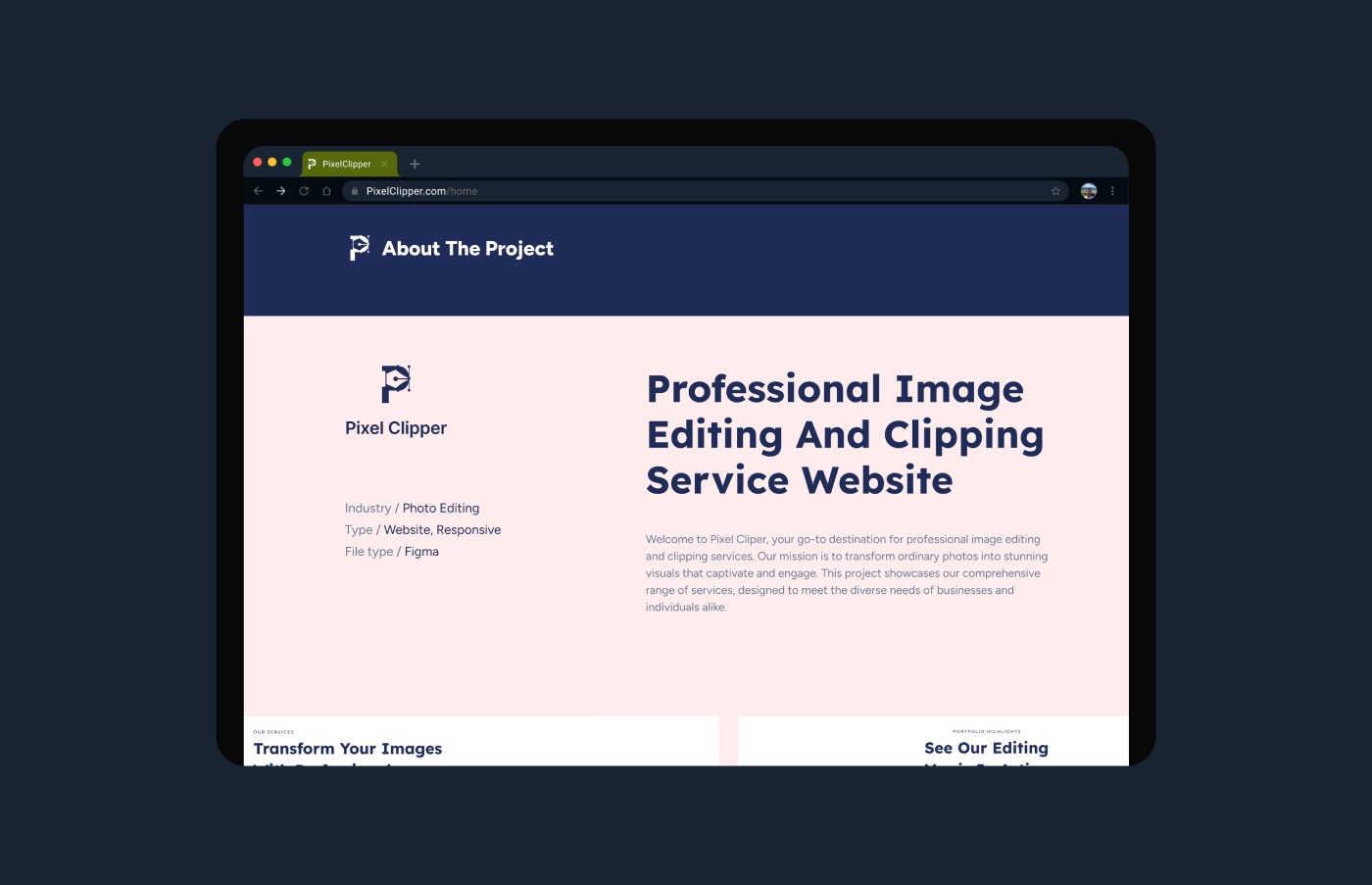 PixelClipper is a professional image editing and clipping path service provider catering to eCommerce brands, photographers, and creative agencies. The objective of this project was to redesign the website experience to clearly communicate service offerings, improve user trust, and increase quote requests. The redesign focused on clarity, credibility, and seamless navigation—helping users quickly understand services and submit projects with confidence.