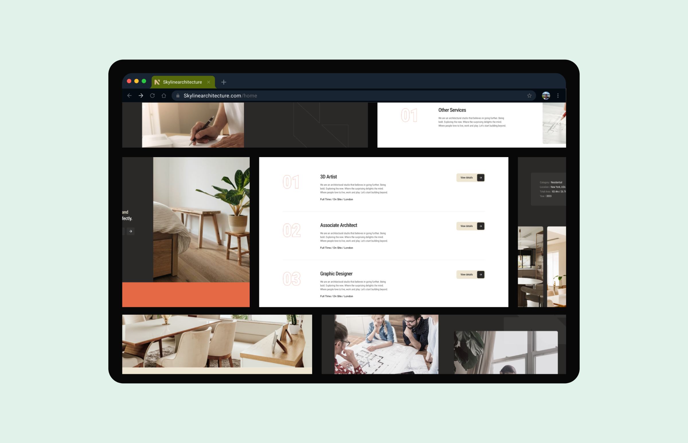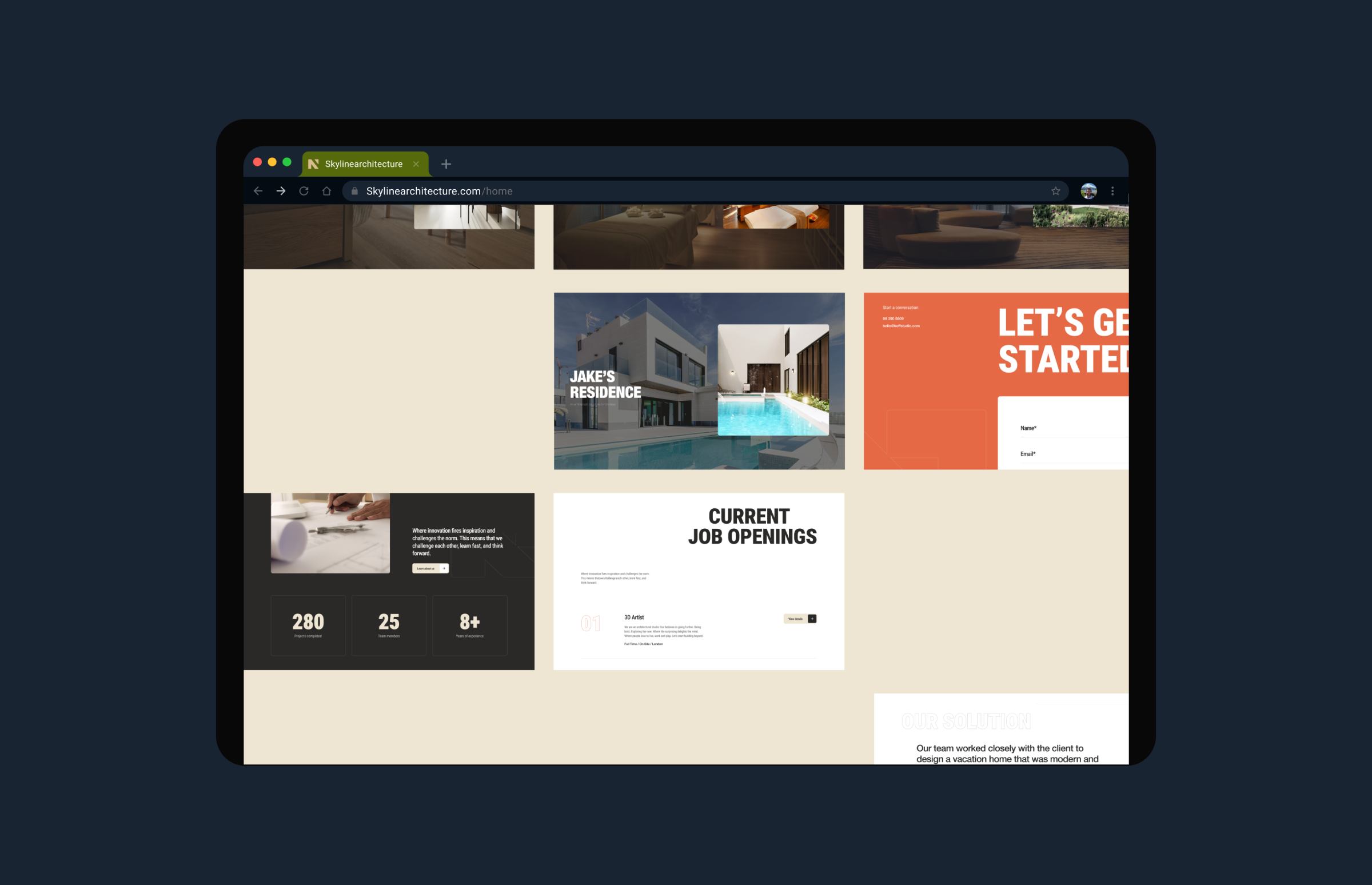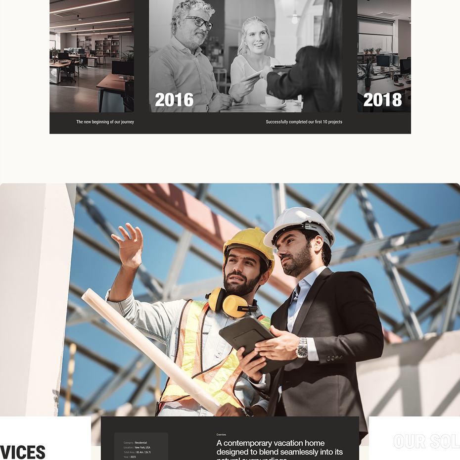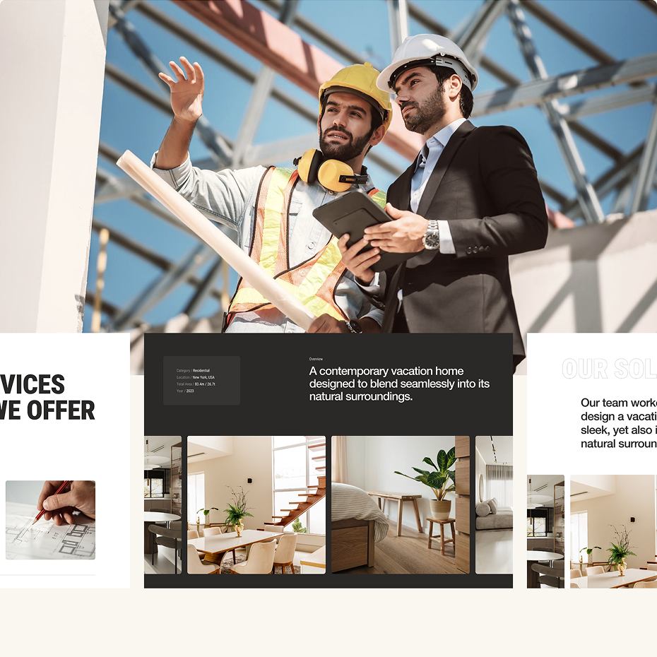 We created a streamlined UI kit, using muted tones, sans-serif typography, and spacious layouts. Reusable components—like project cards and contact forms—ensure consistency throughout.